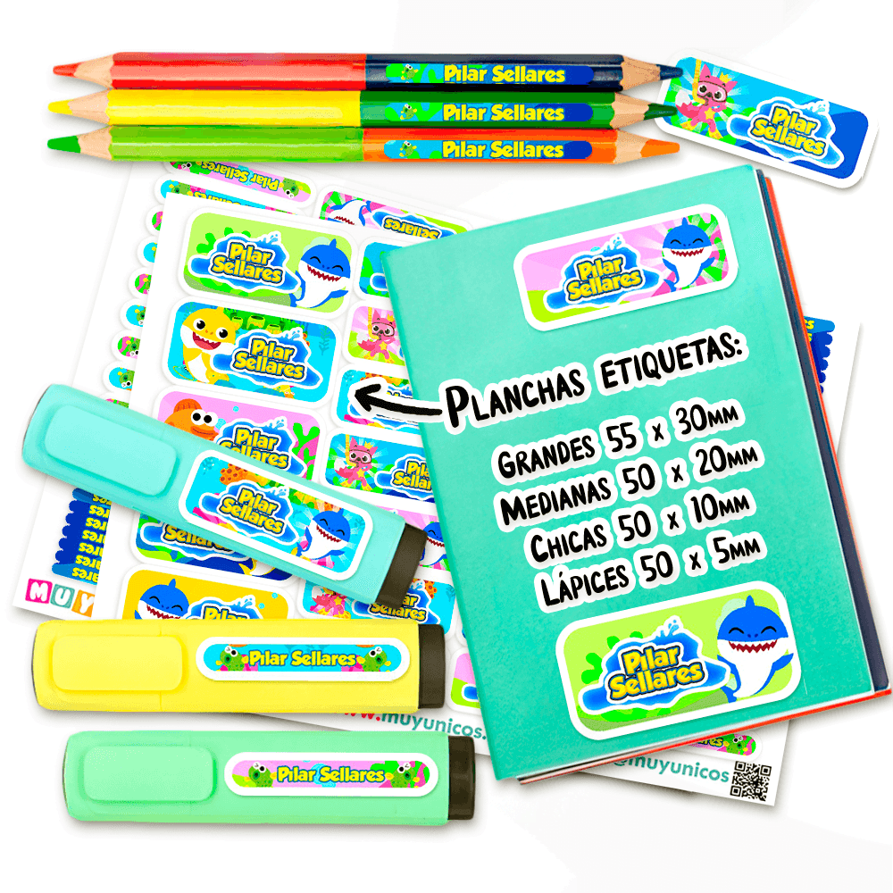 Etiquetas Escolares para Imprimir | Baby Shark (Archivo Digital PDF)