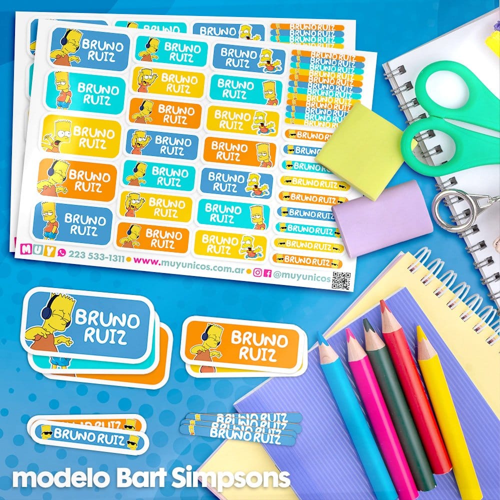 Etiquetas Escolares para Imprimir | Bart Simpsons (Archivo Digital PDF)