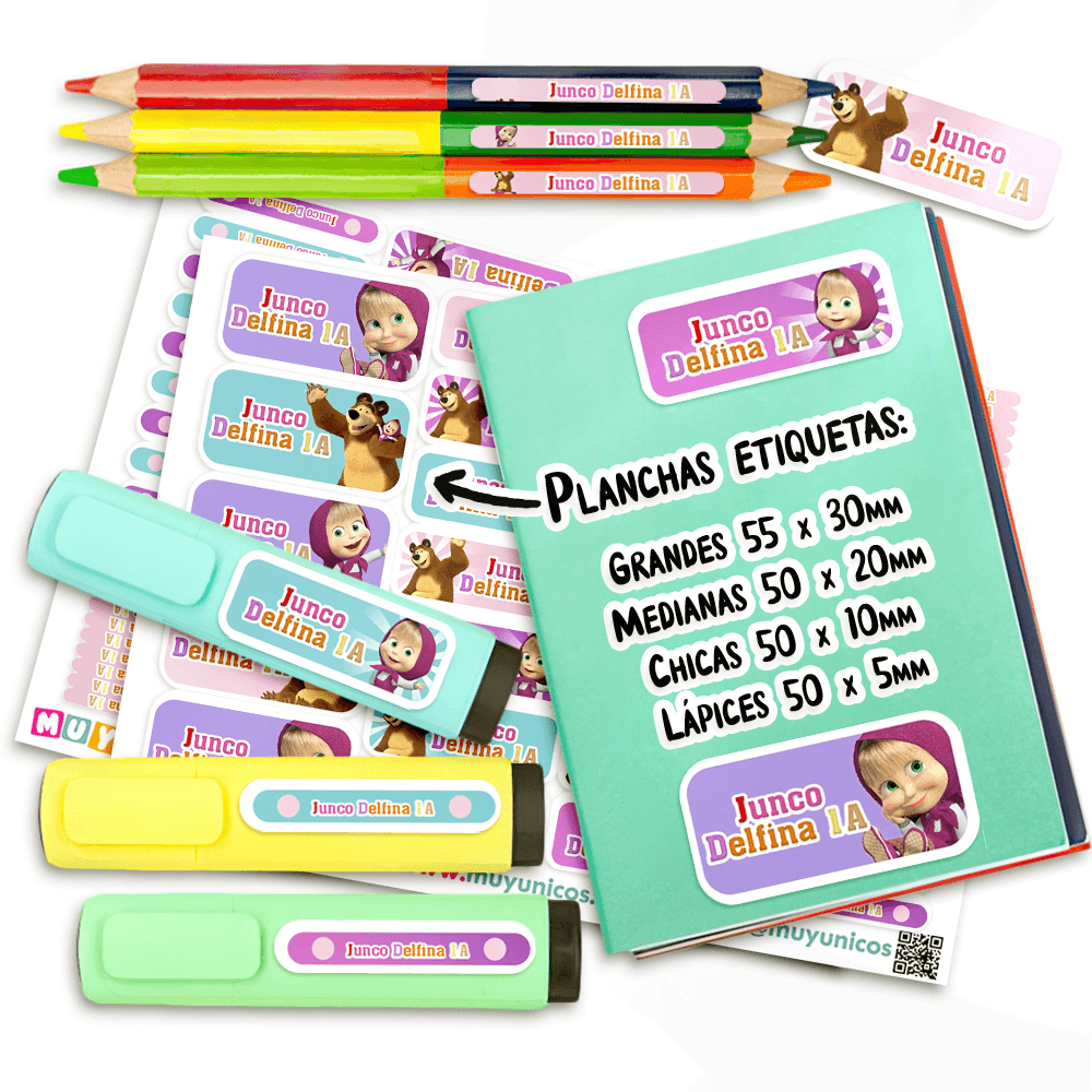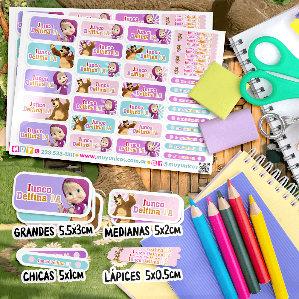 Etiquetas Escolares para Imprimir | Masha y el Oso (Archivo Digital PDF)