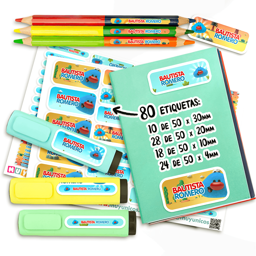 Recibe un kit de etiquetas escolares personalizadas con el nombre que elijas, listas para imprimir. Diseñamos este set a mano para ti y te lo enviamos en un archivo PDF. Este práctico archivo digital en formato PDF de 14 páginas te permite imprimir las etiquetas que necesites, en el tamaño que quieras y cuantas veces desees. Tu compra incluye: Más de mil etiquetas personalizadas de distintos tamaños, diseñadas para adaptarse a todos los útiles y objetos personales. Etiquetas (5×3 cm): Ideales para cuadernos, carpetas, estuches, mochilas y loncheras. Etiquetas (5×2 cm): Perfectas para reglas, marcadores gruesos, sacapuntas, agendas y pegamento…